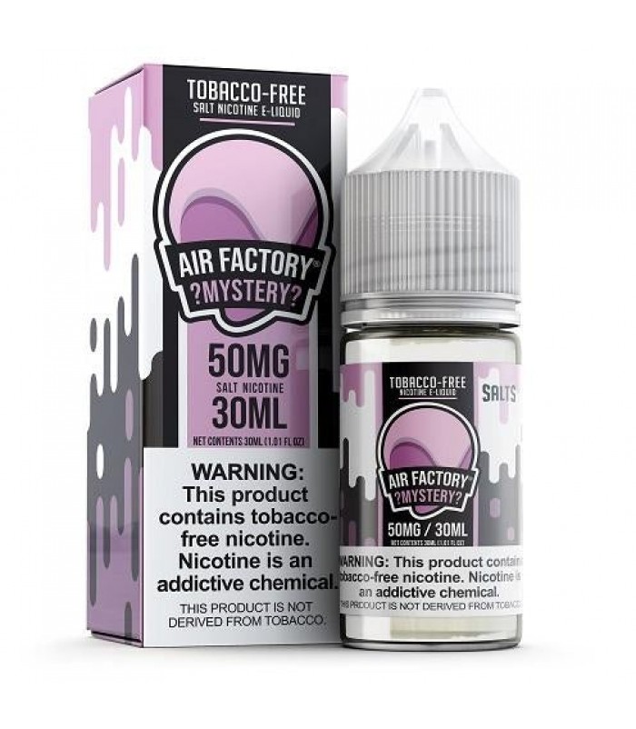 Air Factory Mystery 30ml TFN Nic Salt Vape JuiceMystery: A unique blend of mixed berries, tropical fruit, and a taffy candy coating.Flavor Profile: Berry, Fruit Taffy Nicotine Level: 50MGBottle Size: 30ML Quick Links:All Nicotine SaltsAll Air Factory..