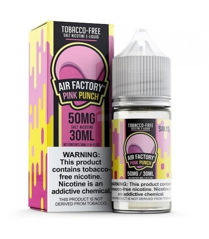 Air Factory Pink Punch 30ml TFN Nic Salt Vape JuicePink Punch: This pink lemonade e-liquid offers plenty of zesty citrus lemon and sweet berry top notes.Flavor Profile: Pink Lemonade Nicotine Level: 50MGBottle Size: 30ML Quick Links:All Nicotine Salt..