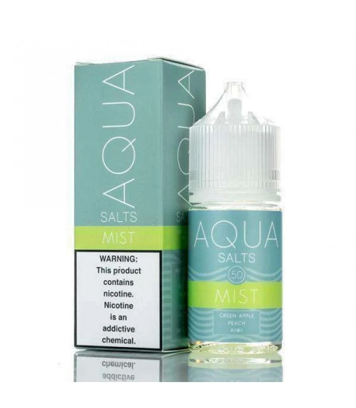Aqua Synthetic Nicotine Mist 30ml Nic Salt Vape JuiceMist: A blend of fresh green apple, peach, and kiwi. This subtle mix of sour apple, sweet peach, and tangy kiwi is a perfect mix for fruit lovers!Flavor Profile: Green Apple, Peach, KiwiNicotine Le..