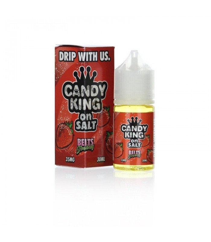 Candy King - Strawberry Belts Salt E-Liquid - Slip into a blissful state of mind with this sweet and sour, strawberry flavored e-juice. Candy King's take on strawberry flavored gummy belts is spot on with big, bright, vape clouds and super sweet strawberry candy flavors. Due to their high nicotine concentration, salt E-Liquids are not recommended for use with sub-ohm systems.