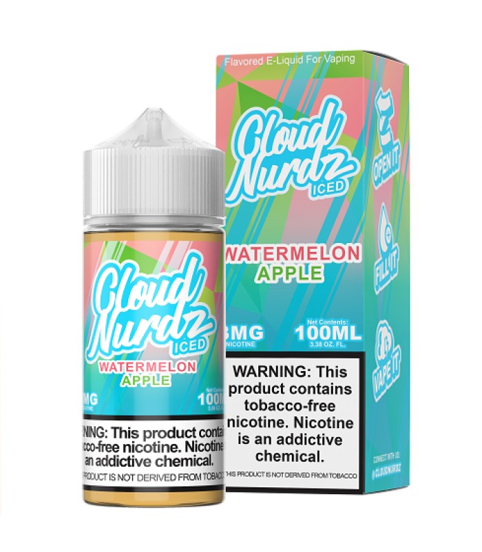 Cloud Nurdz Synthetic Nicotine Iced Watermelon Apple 100ml Vape JuiceIced Watermelon Apple: Refreshingly sweet watermelon flavor with heavy notes of crisp apple and a menthol exhale.Flavor Profile: Watermelon, Apple, MentholNicotine Level: 3MG, 6MGBo..