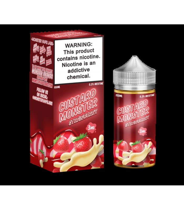 Strawberry Custard: Jam Monster presents Strawberry Custard- enjoy the sweet taste of ripe strawberries and custard. It's juicy and delicious. The creamy custard and sweet strawberries together create a delicious flavor you'll love! Strawberry Custard by Custard Monster.