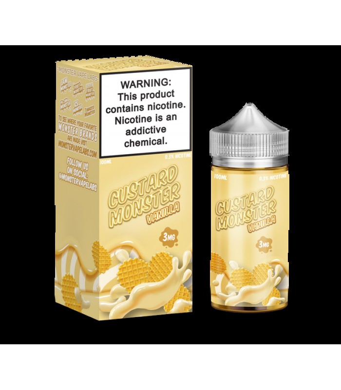 Vanilla Custard: Jam Monster presents Vanilla Custard- enjoy the sweet taste creamy vanilla custard. It's sweet and delicious. The creamy custard and sweet vanilla balance together to create a delicious flavor you'll love! Vanilla Custard by Custard Monster.