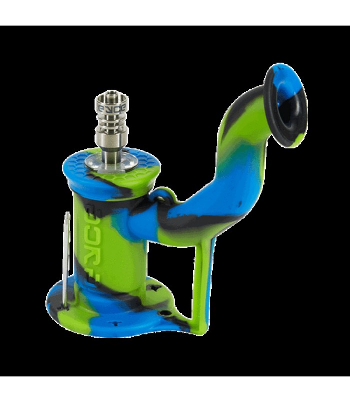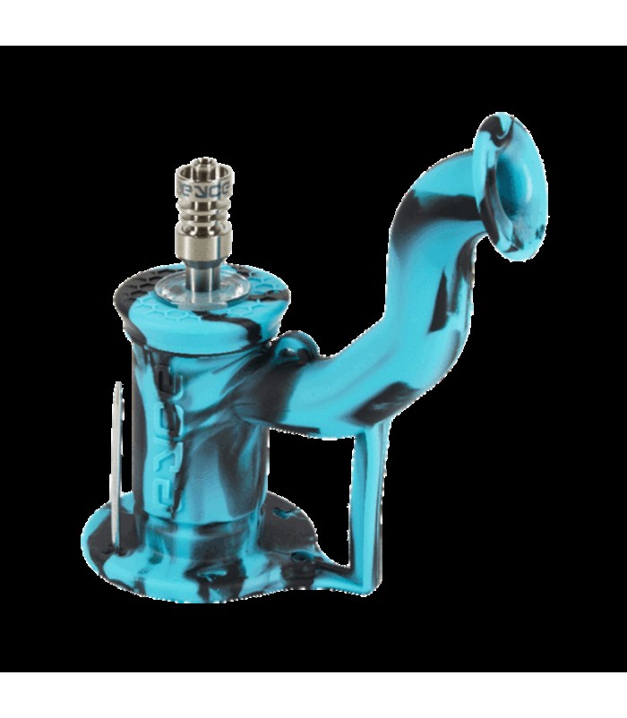 The Eyce Rig II is a sturdier upgrade to the original Eyce Rig. Constructed from Eyce’s classic platinum-cured silicone, the Eyce Rig II features a 10-millimeter borosilicate glass collar that holds the titanium nail and acts as a heat barrier. The reinforced chamber walls provide this virtually indestructible dab rig with additional stability.