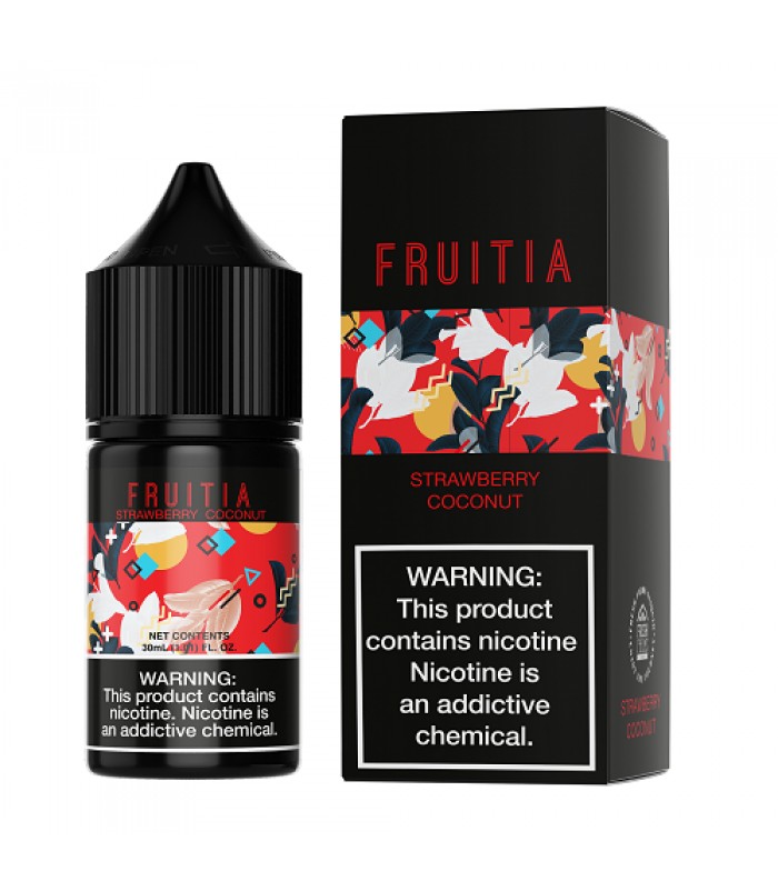 Fruitia Strawberry Coconut 30ml Nic Salt Vape JuiceStrawberry Coconut: A pina colada-inspired blend of creamy coconut topped with juicy strawberries.Flavor Profile: Coconut, StrawberriesNicotine Level: 35MG, 50MGBottle Size: 30ml Quick Links:All Nico..