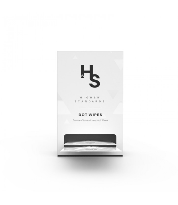 PREMIUM TEXTURED ISOPROPYL WIPESDual-textured and durable, Higher Standards Dot Wipes are pre-soaked alcohol pads embedded with small dots to tackle stubborn scrubbing jobs for pipes, rigs, and vaporizers at home or on-the-go. Designed to cut through..