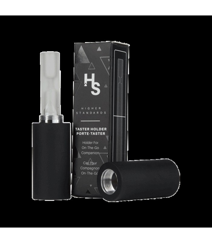 ABOUT THE HIGHER STANDARDS TASTER HOLDEREnsure safe travel with your taster or one-hitter with the Higher Standards Taster Holder. Designed with a discreet-yet-stylish all-black motif, this taster holder features machine threading to create a secure ..