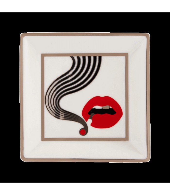 Higher Standards collaborated with interior design icon, Jonathan Adler, to deliver the alluring Higher Standards x Jonathan Adler Smolder Square Tray. Crafted from high-fired porcelain, the durable and heat-resistant Square Tray boasts a 4.5-inch by 4.5-inch space that houses smoking accessories and everyday items. The walls are strategically angled to create a barrier that makes grabbing small items faster and easier.Glazed onto the Smolder Square Tray are cherry red lips that produce a hypnotic black and platinum smoke design. The signature packaging grabs attention with the Higher Standards x Jonathan Adler color scheme and a custom-branded emblem. This tray is hand wash only; to clean, thoroughly dust with a soft, dry cloth.