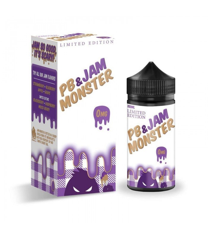 PB & JAM Monster Grape by Jam Monster Liquids takes sweet nutty peanut butter and spreads it over warm buttered toast. Features:100mL Chubby Unicorn Bottle25% PG75% VGChild Resistant Cap Made in USAAvailable nicotine: 0mg, 3mg, 6mg..