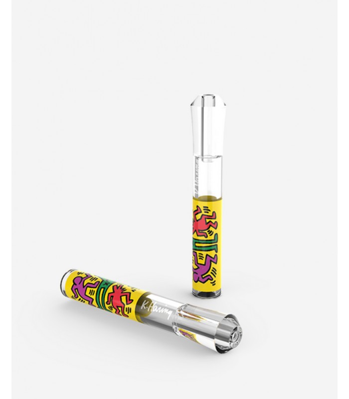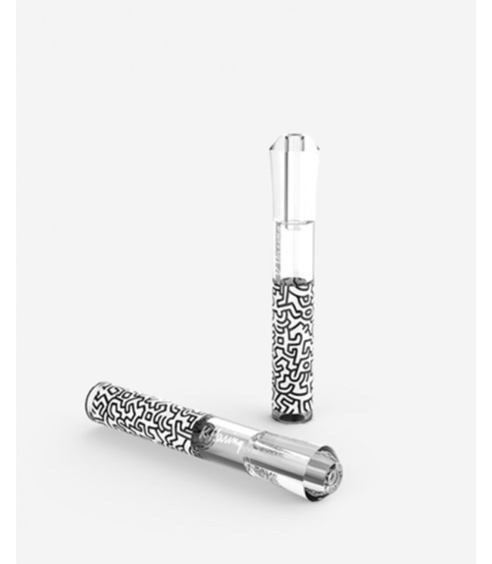 ABOUT THE K.HARING TASTERConstructed from shatter-proof borosilicate glass the K.Haring Taster is a stylish and convenient dry herb pipe. A heat-resistant design featuring Haring’s iconic artwork is wrapped near the open end of the taster for a splas..