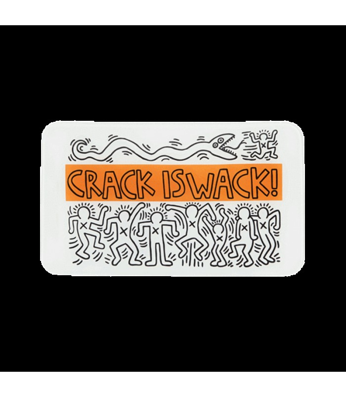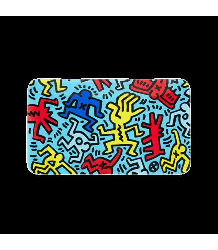 The K.Haring Tray brings Keith Haring’s iconic artwork off of the subway walls and into your sessions. This visually striking rolling tray is constructed from heat-resistant 3 mm thick Ultra White Glass and serves as a spacious surface for dry herb or concentrate session prep. There are four color options to choose from allowing you to find the perfect Keith Haring palette for your next session; the underside of each K.Haring Tray is stamped with Haring’s distinguished signature.