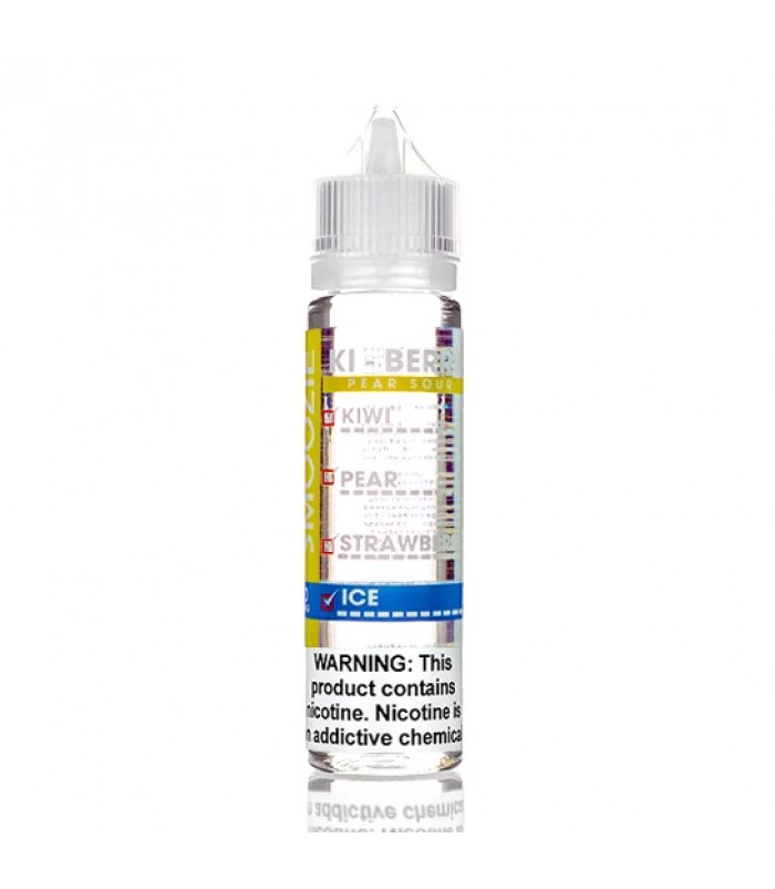 Ki-Berry Pear Sour Ice: A twist on the classic strawberry-kiwi combination, featuring layers of pear and a menthol finish.Flavor Profile: Kiwi, Strawberries, Pear, MentholNicotine Level: 0MG, 3MG, 6MGBottle Size: 60ml..