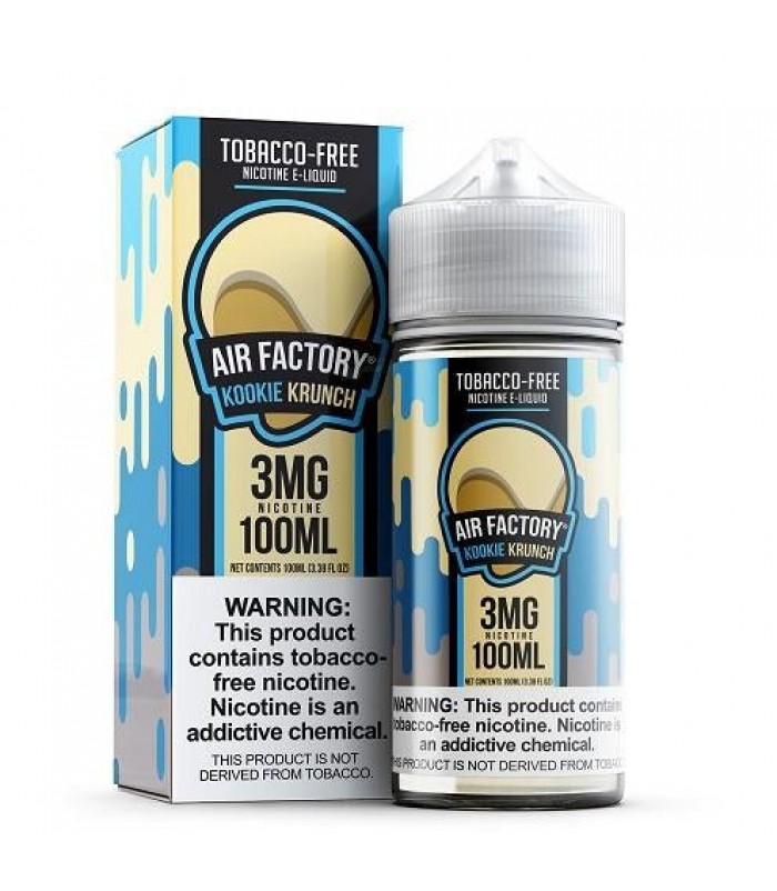 Air Factory Kookie Krunch 100ml TFN Vape JuiceKookie Krunch: The ultimate indulgent dessert vape juice, Kookie Krunch is a cookie-dough inspired creation featuring sweet, sugary dough and notes of chocolate.Flavor Profile: Cookie DoughVG/PG: 70/30Nic..