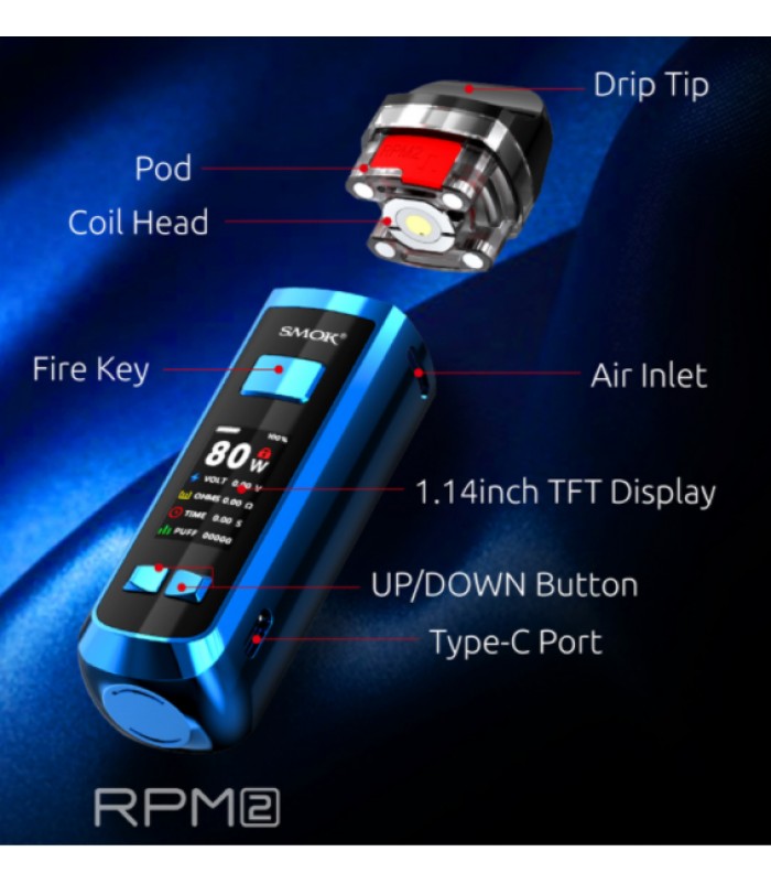 SMOK RPM 2 KitThe powerful RPM2 by Smoktech has finally arrived. Enjoy vaping all day long worry-free with this device's built0in 2000mAh battery, designed for efficient charging. 1-80W range allows the user to determine exactly how much power they n..