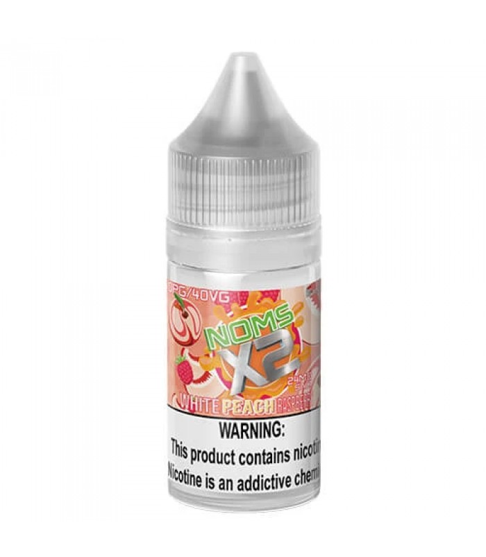 Noms X2 White Peach Raspberry 30ml Nic Salt Vape JuiceWhite Peach Raspberry: Organic white peaches blended with juicy raspberries.Flavor Profile: White Peach, RaspberryVG/PG: 60/40Nicotine Level: 24MG, 48MGBottle Size: 30ML Quick Links:All Nicotine S..