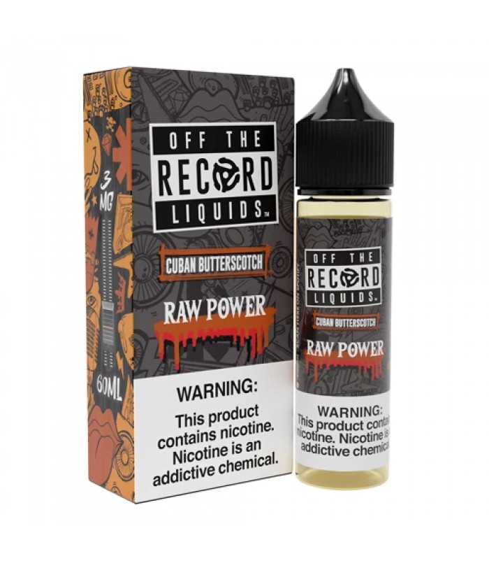Off the Record Raw Power 60ml Vape JuiceRaw Power: Rich, creamy, butterscotch flavor with caramel inspiration and a balanced sweetness.Flavor Profile: ButterscotchVG/PG: 70/30Nicotine: 0MG, 3MG, 6MGBottle Size: 60ml Quick Links:All Regular E-LiquidsA..