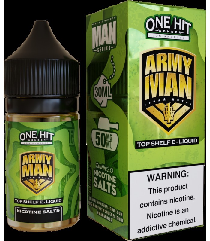 One Hit Wonder Army Man 30ml Nic Salt Vape JuiceArmy Man: A delectable taste of tart lime and sweet custard flavors make Army Man from One Hit Wonder hard to put down. A burst of sour lime flavor and smooth custard creates a flavor reminiscent of a f..