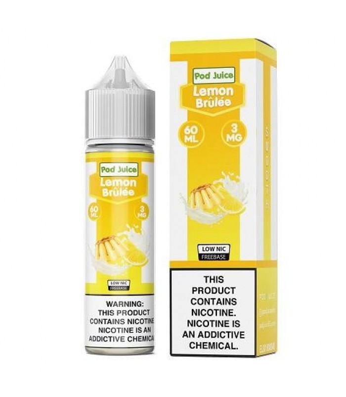 Pod Juice Lemon Brulee 60ml Vape JuiceLemon Brulee: The ultimate dessert vape juice for citrus-lovers! A lusciously soft custard flavor layered with creamy lemon zest.Flavor Profile: Lemon Zest, CustardNicotine Level: 0MG, 3MG, 6MGBottle Size: 60ml Q..