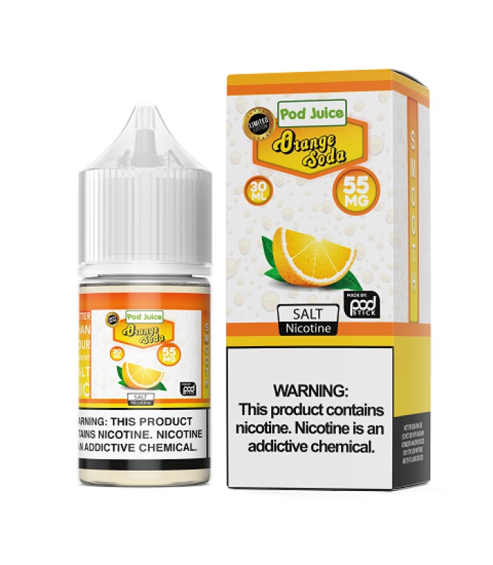 Pod Juice Orange Soda Ice 30ml Nic Salt Vape JuiceOrange Soda Ice: A sugary-sweet citrus soda with candied orange flavor and a blast of icy menthol to finish.Flavor Profile: Candied Orange, MentholNicotine Level: 35MG, 55MGBottle Size: 30ml Quick Lin..