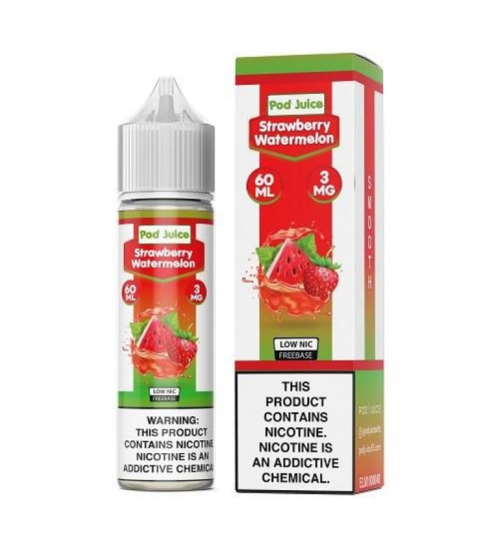 Pod Juice Strawberry Watermelon 60ml Vape JuiceStrawberry Watermelon: Fresh and juicy strawberries blended with a burst of watermelon flavor.Flavor Profile: Strawberry, WatermelonNicotine Level: 0MG, 3MG, 6MGBottle Size: 60ml Quick Links:All Regular ..