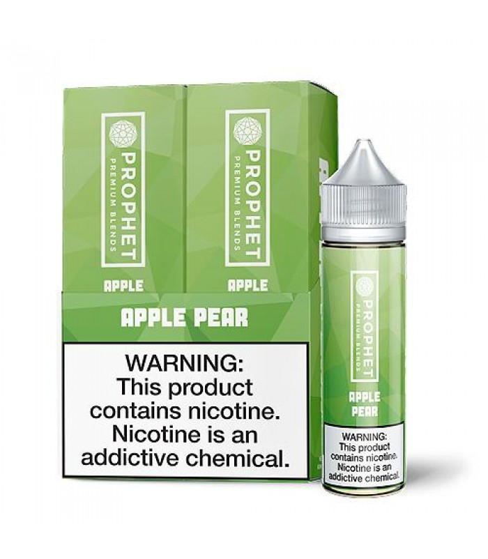 Prophet Premium Apple Pear 2x 60ml Vape JuiceApple Pear: A crisp and refreshing combination of green apples and pears.Flavor Profile: Green Apple, PearNicotine Level: 3MG, 6MGBottle Size: 2 x 60ml Quick Links:All Prophet Products..