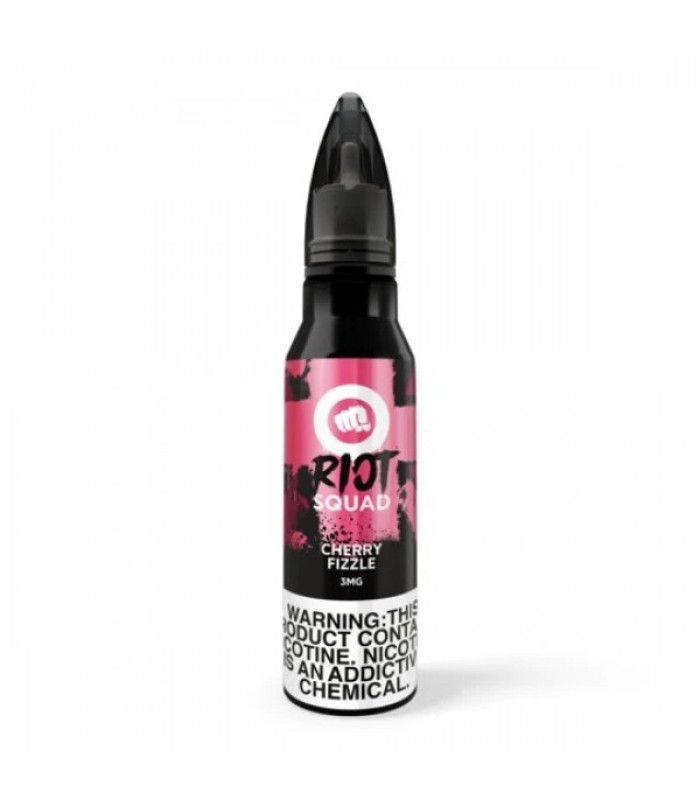 Riot Squad Cherry Fizzle 60ml Vape JuiceCherry Fizzle: Cherry vape juice that starts sweet and finishes sour.Flavor Profile: Sweet and Sour CherryVG/PG: 70/30Nicotine Level: 0MG, 3MG, 6MGBottle Size: 60ml Quick Links:All 60ml E-Liquid..