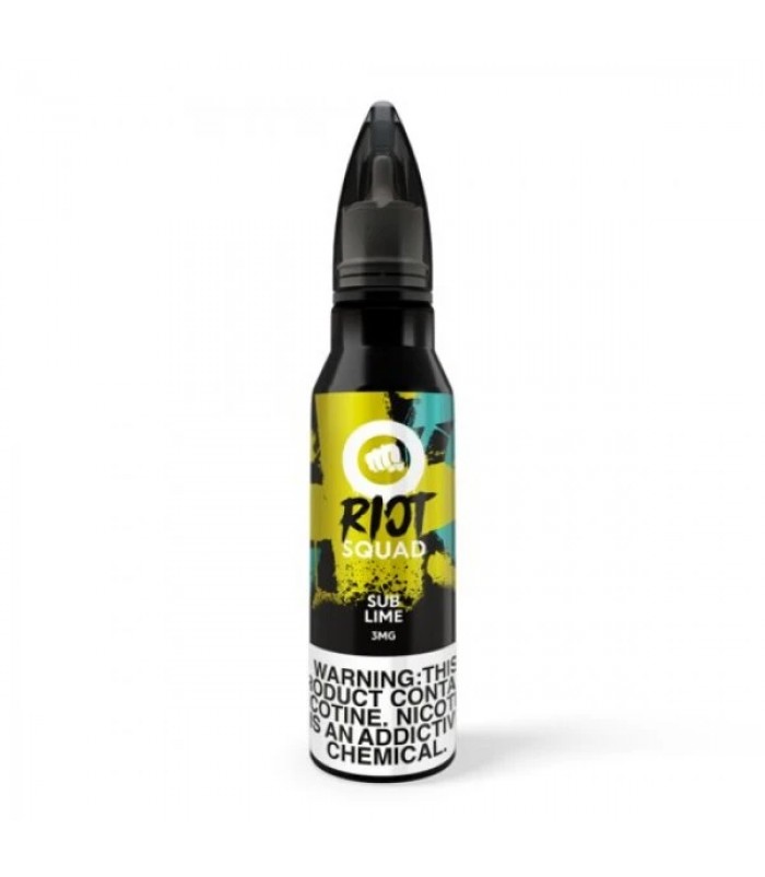 Riot Squad Sub-Lime 60ml Vape JuiceSub-Lime: A classic lemon and lime combination with plenty of sour notes.Flavor Profile: Sour Lemon, LimeVG/PG: 70/30Nicotine Level: 0MG, 3MG, 6MGBottle Size: 60ml Quick Links:All 60ml E-Liquid..