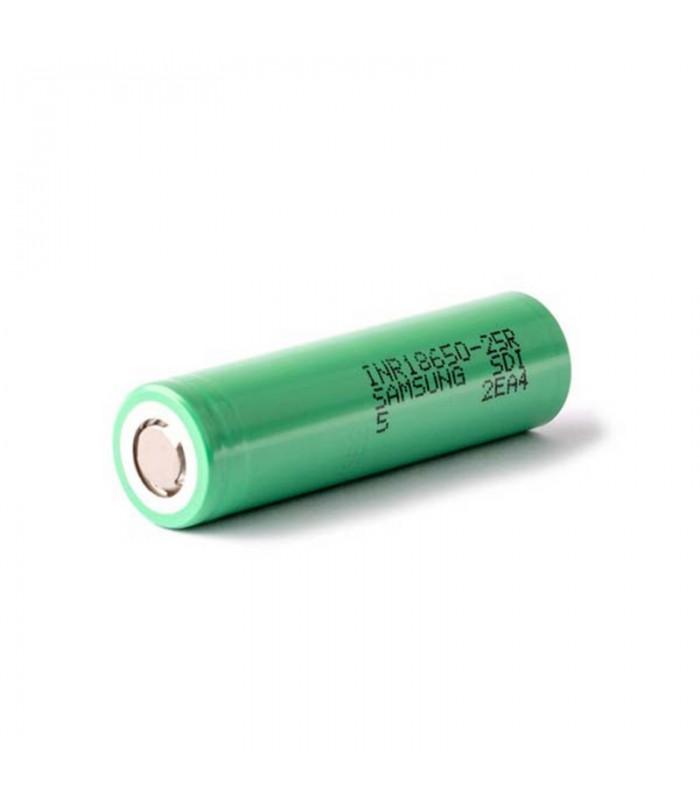 The Samsung 25R 18650 rechargeable Li-ion battery has been redesigned to be more powerful and safer for low resistance/sub-ohm vaping. The 25R now features Lithium Manganese Nickel (INR) chemistry, and is the recommended flat top battery for electron..