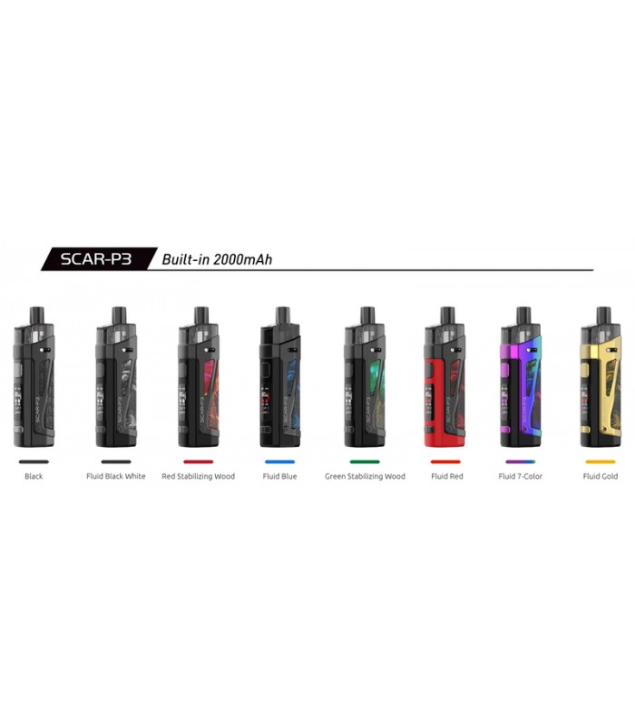 The SMOK SCAR-P3 Kit is powered by 2000mAh internal battery capacity and supports DTL or MTL vaping for with 80w max output.