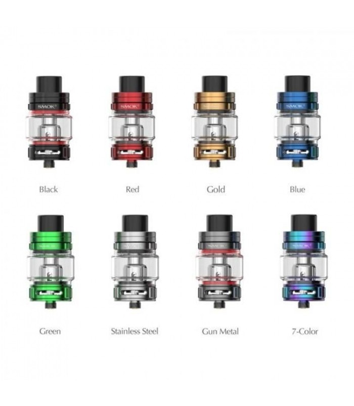 The SMOK TFV9 is constructed with high-quality stainless steel and heat-resistant glass. Equipped with a dual slotted adjustable bottom airflow control ring that can diffuse air entering the atomizer.