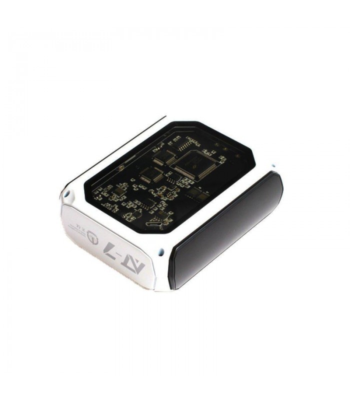 This mod has a very sleek transparent chassis and features a large PCB onboard chipset capable of throttling up to 100W with a built-in 3500mAh Li-Polymer battery. This device is precisely milled with highly durable alloy construction, housing an acrylic glass centerpiece to provide a transparent view of the internal system. It has a really cool futuristic look and feel! The intelligent PCB is highly advanced, implementing a direct output voltage-based system up to 100W of power along with a suite of safety protection. The AT-7 Mod is equipped with a 3500mAh Li-Po Battery, charged via microUSB port. See details below.