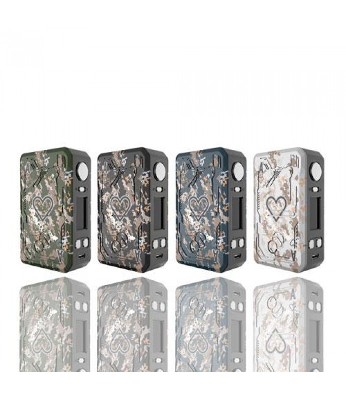 The Tesla Vape POKER 218W Box Mod is a visually striking high-performance vape system, integrating a lightweight construction with extensive temperature control suite and output chipset. Nestled behind a magnetic battery door, two high-amp 18650 batteries sit to power the Tesla Vape POKER Box Mod, allowing for wattages up to 218 and resistances as low as 0.05ohms. This wide range is achievable due to the proprietary chipset within, unlocking the full potential of the extensive temperature control suite accepting wires of nickel, titanium, or stainless steel composition. Visually, the Teslacigs POKER Box Mod sports a colored digital camouflage graphic design with an overlaid playing card graphic, making for a desirable design.