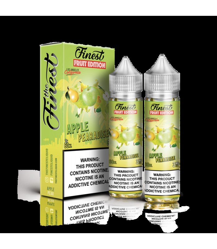 The Finest Apple Pearadise 2x 60ml Vape JuiceApple Pearadise: Crisp juicy apples and delicate pear juice create this sensational fruit e-juice.Flavor Profile: Green Apple, PearNicotine Level: 0MG, 3MG, 6MGBottle Size: 2 x 60ml Quick Links:All E-Liqui..