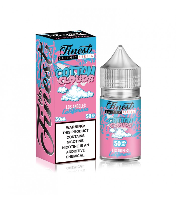 The Finest Cotton Clouds 30ml Nic Salt Vape JuiceCotton Clouds: A sugar blast of cotton candy flavor.Flavor Profile: Cotton CandyNicotine Level: 30MG, 50MGBottle Size: 30ml Quick Links:All E-Liquids by The FinestAll Nicotine Salts..