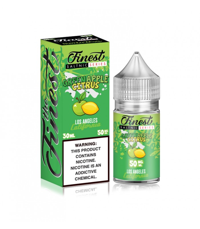 The Finest Green Apple Citrus 30ml Nic Salt Vape JuiceGreen Apple Citrus: Green apple hard candies and a citrus lemon finish.Flavor Profile: Green Apple Hard Candy, LemonNicotine Level: 30MG, 50MGBottle Size: 30ml Quick Links:All E-Liquids by The Fin..