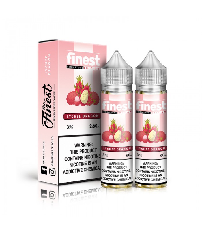 The Finest Lychee Dragon 2x 60ml Vape JuiceLychee Dragon: Exotic dragonfruit and lychee extract blended with a strawberry medley.Flavor Profile: Dragonfruit, Lychee, StrawberryNicotine Level: 0MG, 3MG, 6MGBottle Size: 2 x 60ml Quick Links:All E-Liqui..