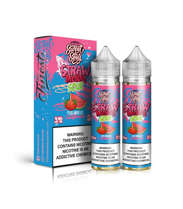 The Finest Straw Melon Sour 2x 60ml Vape JuiceStraw Melon Sour: Sour strawberries and sweet watermelon.Flavor Profile: Sour Strawberry, WatermelonNicotine Level: 0MG, 3MG, 6MGBottle Size: 2 x 60ml Quick Links:All E-Liquids by The Finest..