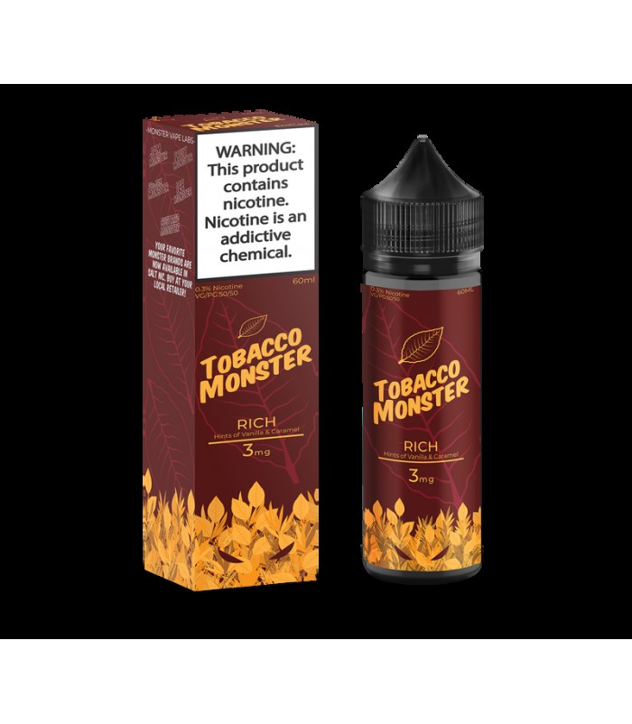 Rich: Treat yourself to the classic taste of tobacco! It's the rich and bold flavor you already know and love. The inhale comes full of tobacco that clings to your taste buds. This flavor isn't one to miss! Rich by Tobacco Monster.Flavor Profile: Cla..