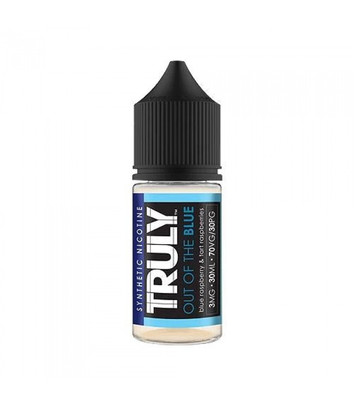 Truly Out of the Blue 30ml Vape JuiceOut of the Blue: A candy blast of blue raspberry e-juice and tart fresh red raspberries.Flavor Profile: Blue Raspberry, Red RaspberryVG/PG: 70/30Nicotine Level: 3MG, 6MGBottle Size: 30ml..