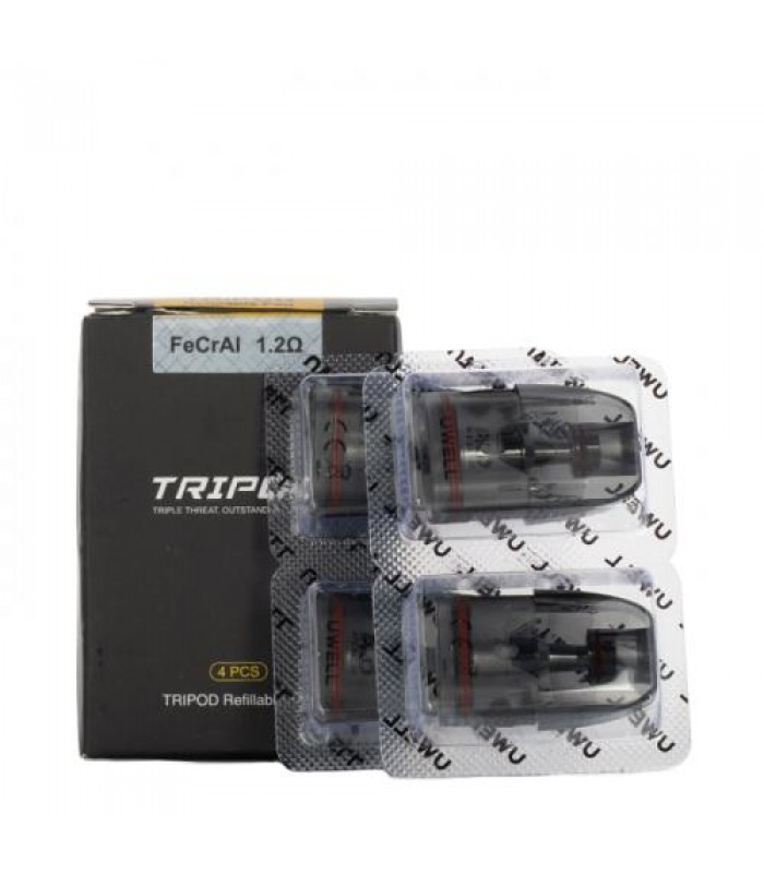 Uwell Tripod Replacement Pods (Pack of 4)This pack of 4 replacement pods is designed for use with the Uwell Tripod PCC Pod Device Kit. These pods are refillable with up to 2ml of e-liquid, either freebase or nicotine salt, and feature a 1.2ohm coil. ..