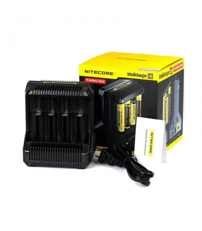 This is a universal smart battery charger compatible with almost all cylindrical rechargeable batteries. The i4 automatically detects Li-ion, Ni-MH and Ni-Cd batteries with voltages of 4.2V/3.7V/1.48V. Intelligent charging circuitry selects the optimal charging mode (CC, CV) for a given battery. Each of the i8's eight microcomputer-controlled charging slots then monitors and charges the battery independently. The Nitecore I8 isn't just a battery charger, it's an all-inclusive charging station for both batteries and your vital USB powered electronics. The stored energy within charged batteries can be used to power smartphones, tablets and anything else that runs via USB power thanks to the I8's two USB out ports. This makes the I8 great for travel or as an all-in-one power station for work, an office or at home.