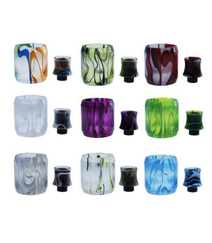 This device allows you to have a wide bore drip tip similar to a Chuff Cap on a Valyrian tank plus a fully acrylic tank to match. It fits 510 drip tip adapters and has a 9mL e-liquid capacity. The tip and tank are constructed of one solid piece of ac..