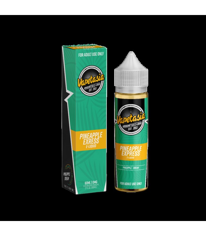 Vapetasia ICED Pineapple Express 60ml Vape JuiceICED Pineapple Express: Enjoy tangy and delicious pineapple mixed with a refreshing blast of menthol. The tang and cool balance to make a tasty flavor! It's a delicious mix. ICED Pineapple Express by Va..
