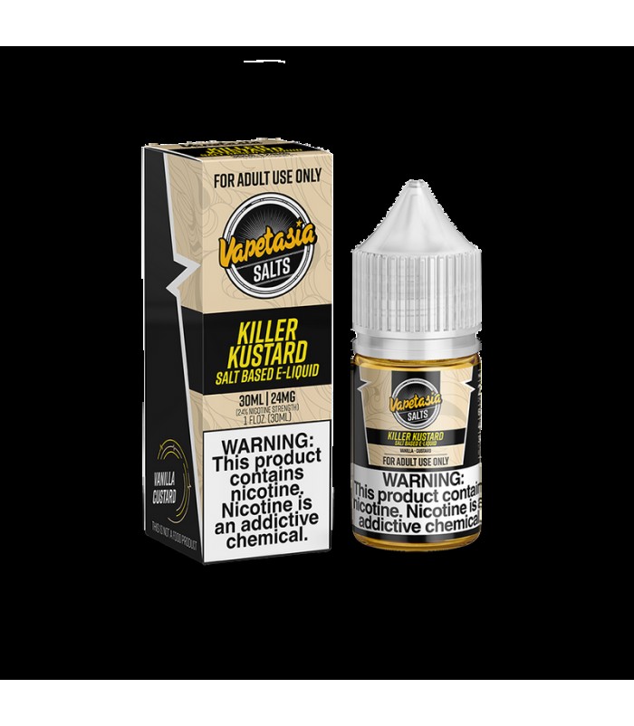 Killer Kustard: Vapetasia's best-selling e-liquid now in Nic Salt form. Winner of The Best Dessert Flavor award at the Vapor Exhibit in 2014. The combination of rich vanilla bean flavors with a creamy custard finish makes Killer Kustard hard to put d..