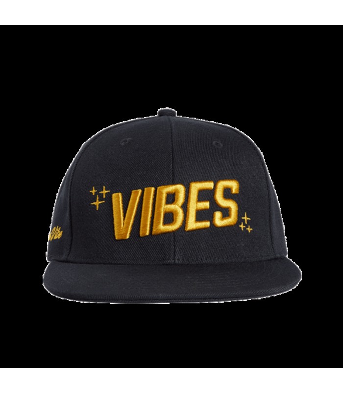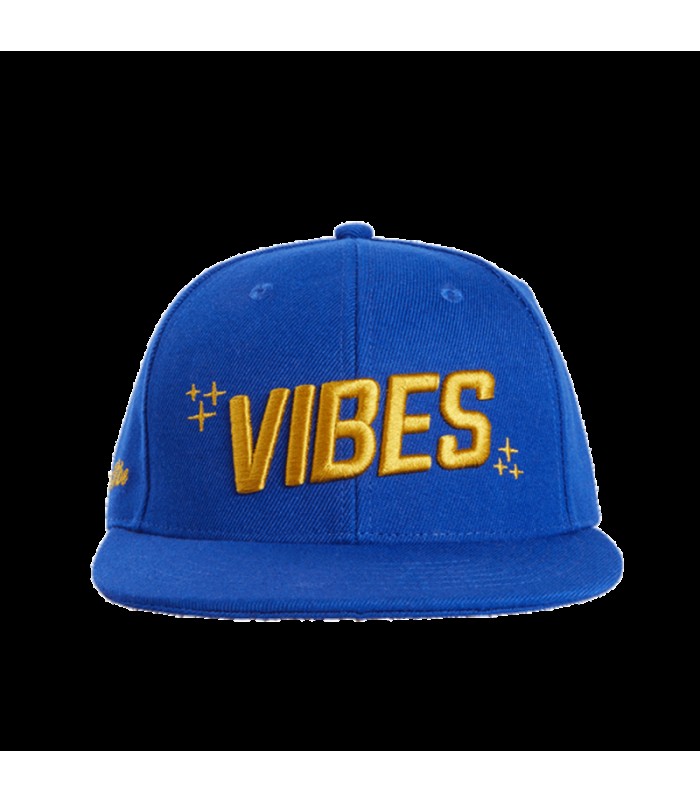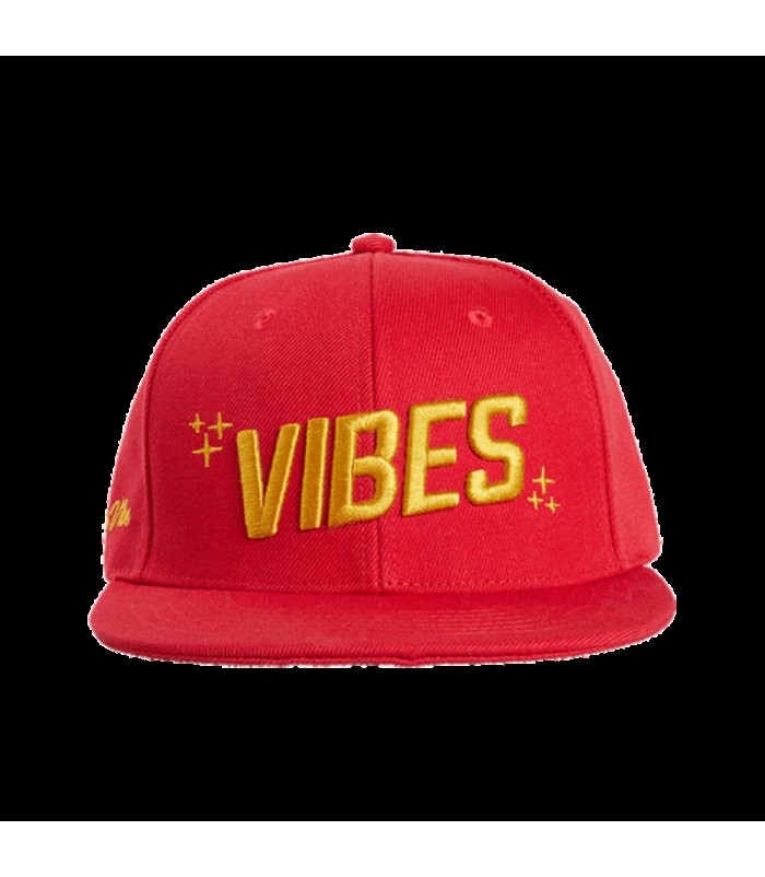 ABOUT THE VIBES ROLLING PAPERS SNAPBACK HATThe Vibes Snapback is an adjustable cap available in Blue, Black, or Red. Each hat features metallic gold 3-D embroidery of the Vibes starry logo. Additional starry Vibes Rolling Papers branding is also embr..