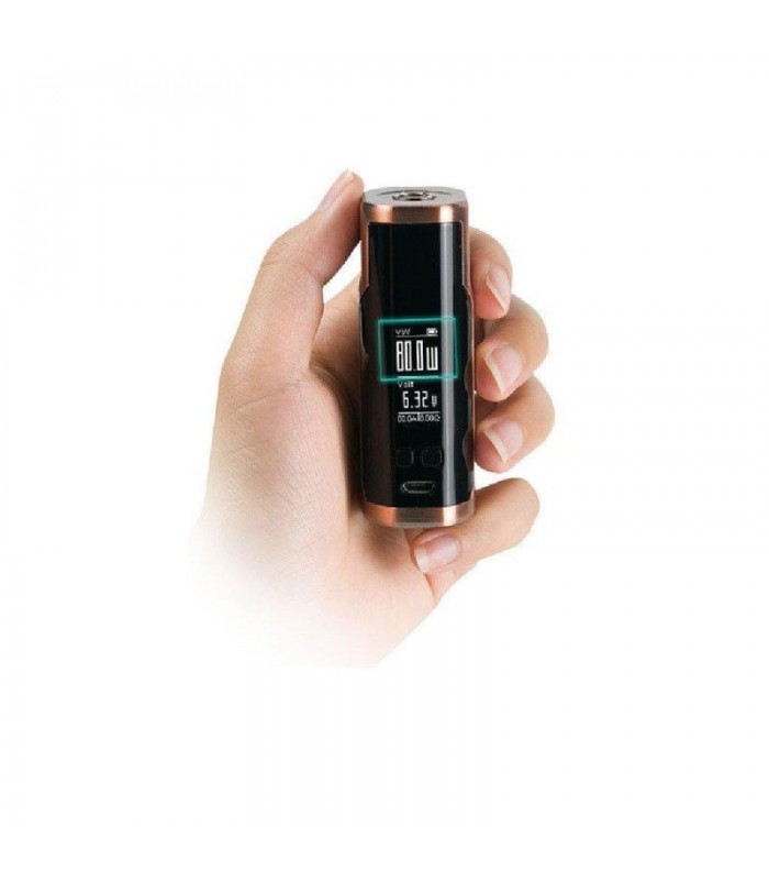 This mod is an advanced compact device with elaborate onboard technology, including 80W of output and a sophisticated temperature control suite. It is an ergonomic device with a sleek design. It has a hidden firing bar that matches symmetrically to t..